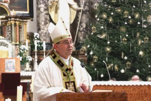 Govoreći o blagdanu Prikazanja Gospodinova, istaknuo je da je on kristološki blagdan, ali i Marijin. „Drugi vatikanski koncil u Dogmatskoj konstituciji o Crkvi Lumen gentium govori nam da je Krist svjetlo naroda, a Marija je bila prva koja je to svjetlo donijela na ovaj svijet. Ona je znak Crkve, sigurne nade i utjehe putujućem narodu Božjem. Marija se svojim ‘neka mi bude’ predaje i posvećuje Bogu da bi potpuno služila utjelovljenoj Riječi. Kao  majka postaje nositeljica svjetla i ponizna službenica“, rekao je te dodao da se vjera, kada se osporava od ljudi ili od svijeta, uvijek jača i prima posebnu snagu u Kristovom križu, u njegovoj ljubavi prema Ocu i čovječanstvu.