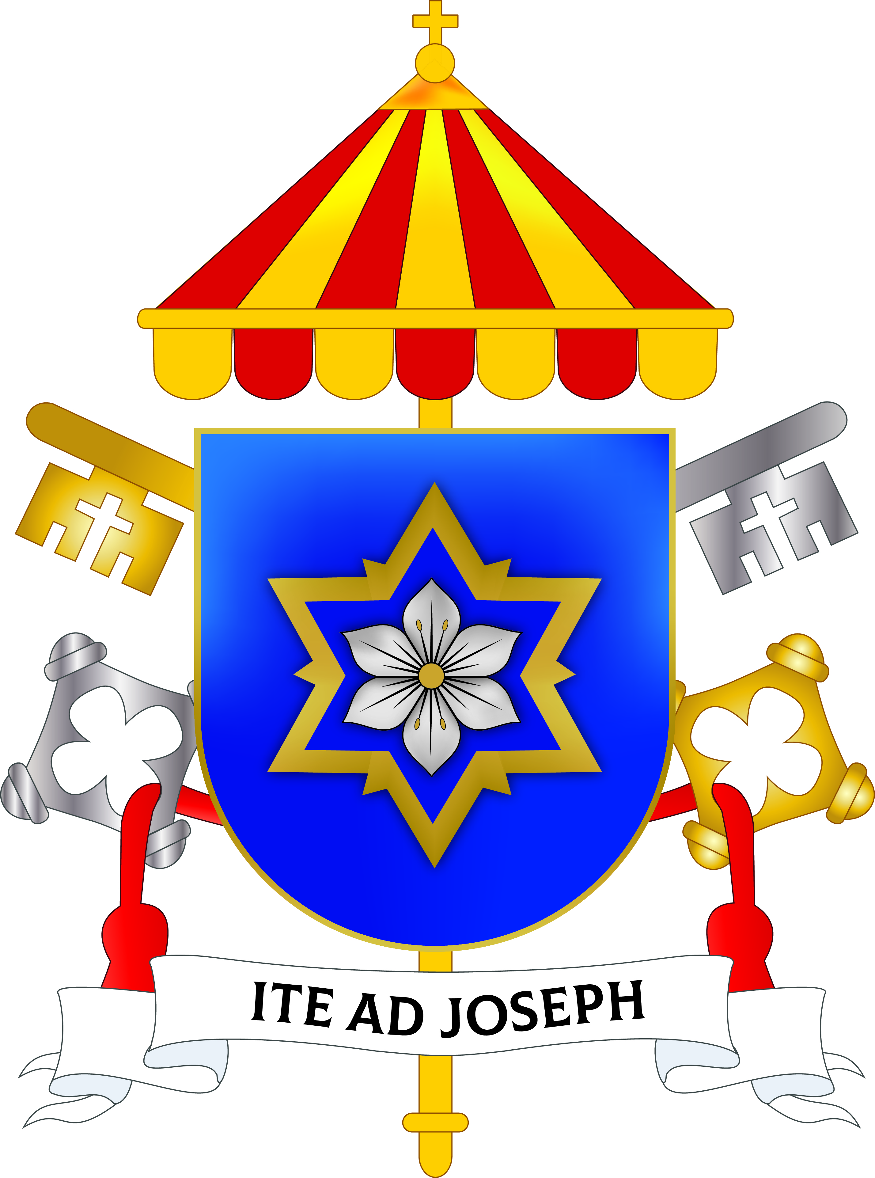 Ispod štita nalazi se ispisano geslo na latinskom jeziku: „Ite ad Joseph“, odnosno „Idite k Josipu“, čime i sam grb potiče svakog čovjeka dobre volje da se utječe u svojoj potrebi sv. Josipu.
